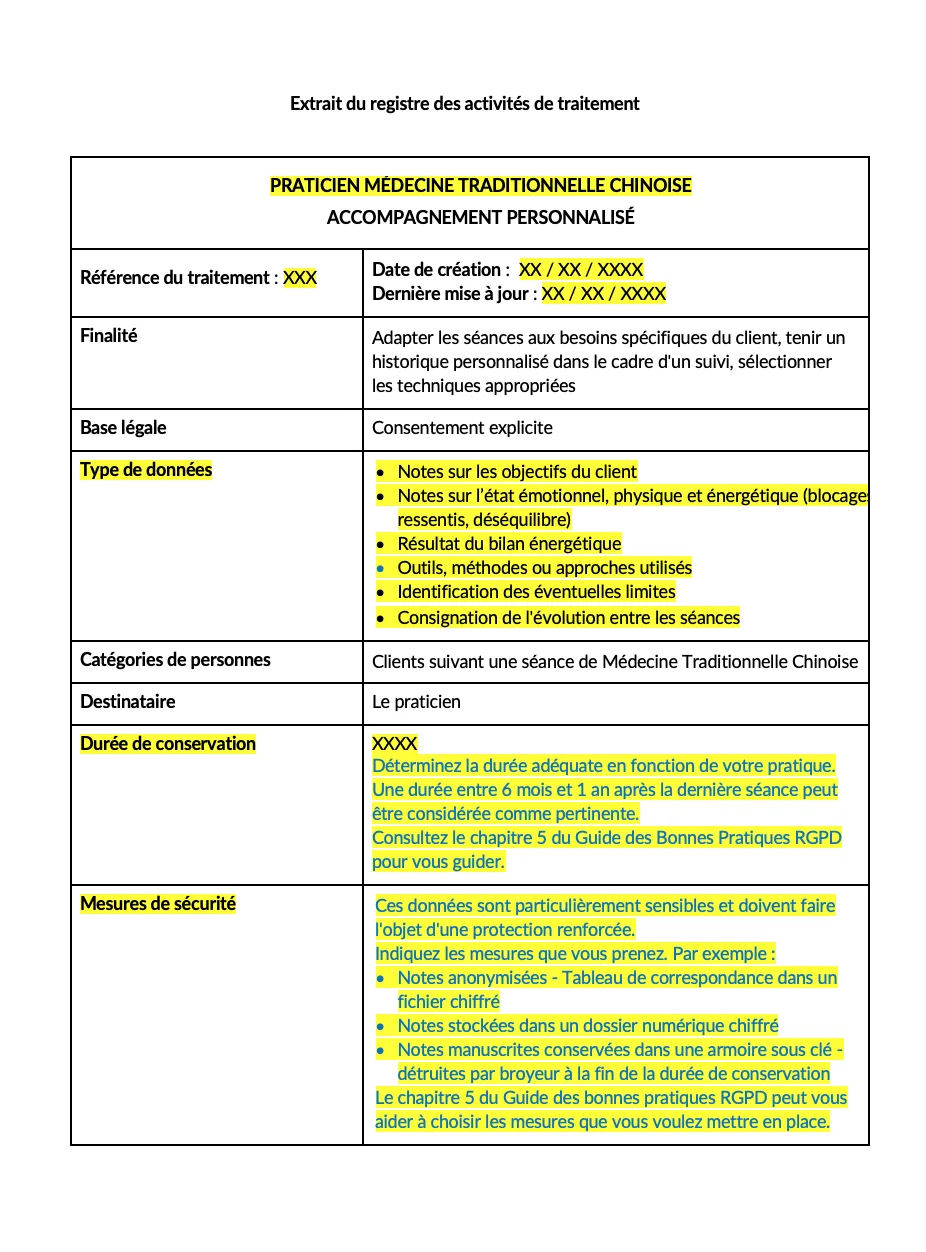 - Registre des activités de traitement